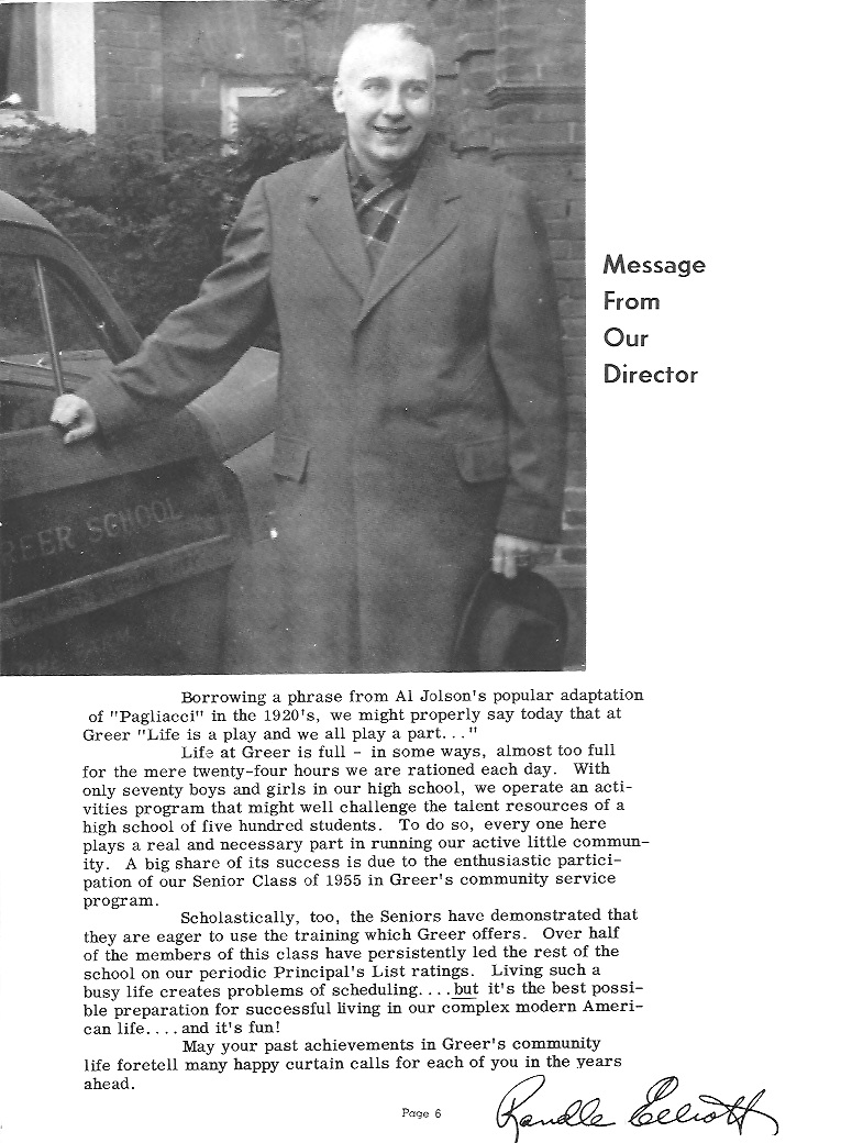 ![]() AMOS GAROLD BERRY Born: May 28, 19**; Wheelock, Vermont Entered Greer: March 1, 1953 Millbrook High School; Millbrook, New York; 1,2 Roelif Brooks Award 3; Choir Cross 3 Dramatics 3, 4; Martin Play 3, 4 Glee Club 3, 4; Choir 3, 4 Ambition: Business Page 10 |