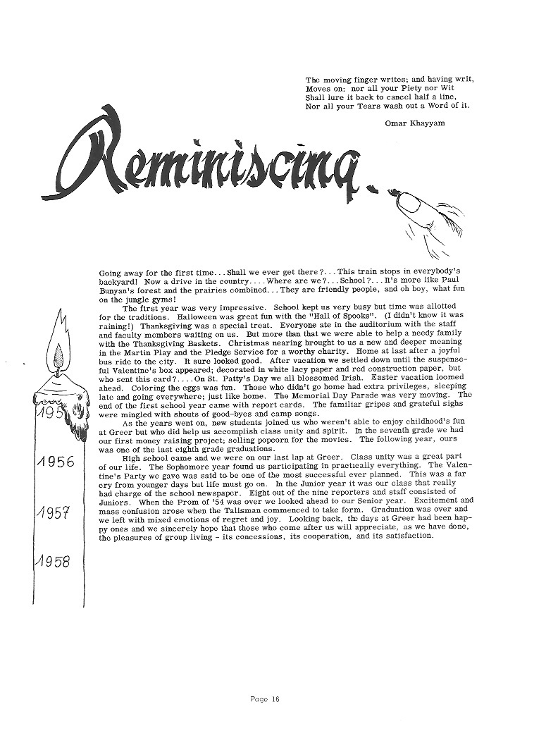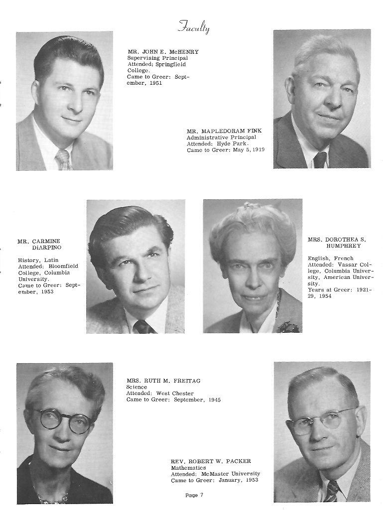 GLORIA FERNANDA SICHEL Born: June 22, 19**; Stamford, Connecticut Entered Greer: October 4, 1942 Class Secretary 1, 2 Sportsmanship Award 1; Newhall Award 2 Red & White 2, 3; Talisman 4 Glee Club 1, 2; Choir 1, 2 Science Club 2, 3, 4 Modern Dance 1 Cheerleading 1, 2, 3, 4; G.A.A. 3, 4 Volleyball 3, 4; Softball 1, 2, 3, 4 Ambition: College education ![]() JOHN A. TRAVLOS Born: March 8, 19**; Athens, Greece Entered Greer: September 10, 1952 Port Washington High School; Port Washington, New York; 1 Albrecht Award 4; Talisman 4 Movie Projectionist 1; Hot Rod Club 1 Football 2; Assistant Manager 3 Basketball 3, 4; Manager 2 Track 1 Ambition: Automotive Engineer |