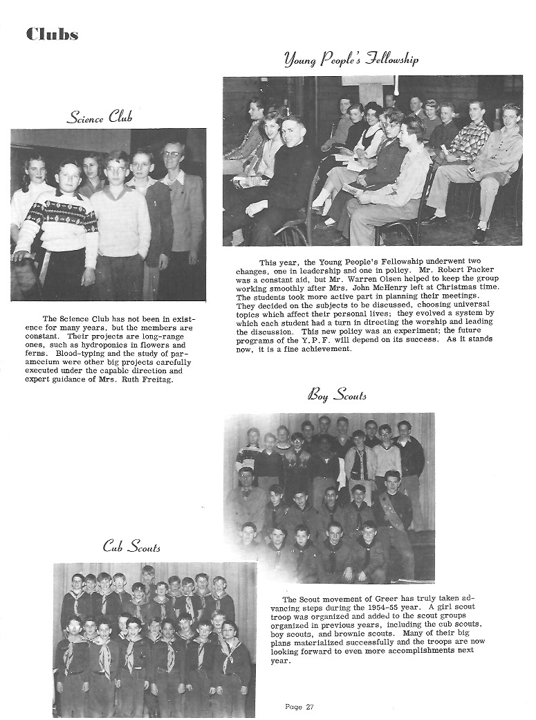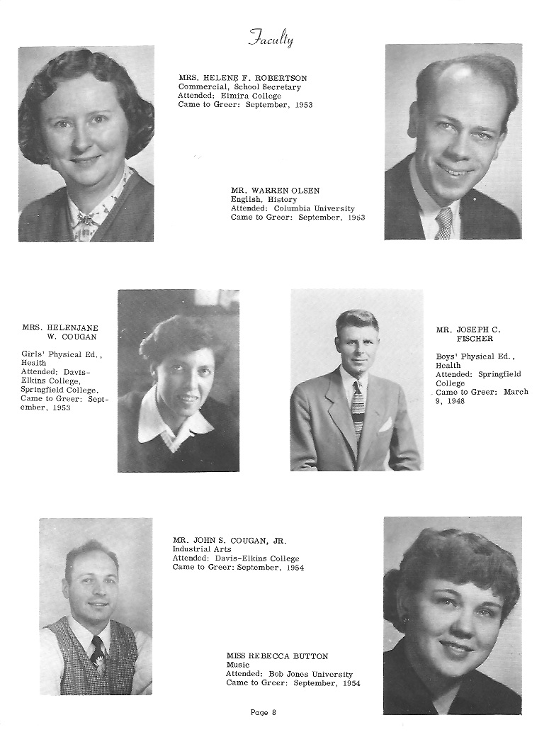 JOHN WILLIAM MOFFITT Born: August 2, 19**; New York, New York Entered Greer: July 4, 1950 Ambition: Engineer ![]() LAURA LOU SALAY Born: March 19, 19**; Clearfield, Pennsylvania Entered Greer: August 18, 1954 St. Mary's-in-the-Field; Valhalla, New York; 1, 2, 3 Dramatics 2; Glee Club 2 Basketball 2, 3, 4; Volleyball 2, 4 Baseball 2, 3, 4; Swimming 1, 2, 3 Ambition: Business Page 13 |