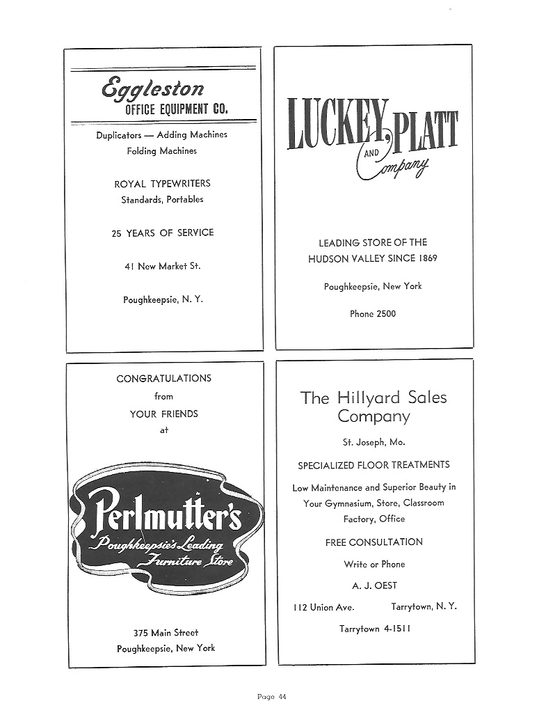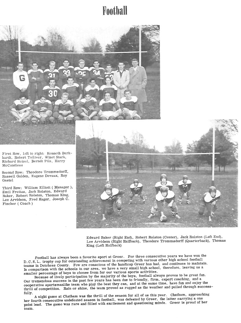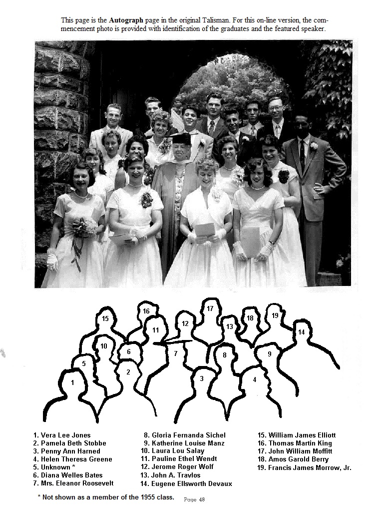 DIANA WELLES BATES Born: January 2, 19**; New York, New York Entered Greer: September 18, 1954 Girls High School; Brooklyn, New York; 1, 2, 3 Glee Club 4 Ambition: Further education in Industrial Arts ![]() EUGENE ELLSWORTH DEVAUX Born: October 16, 19**; Brooklyn, New York Entered Greer: June 15, 1943 Class Vice President 2 Talisman 4; Football 2, 3, 4 Basketball 2, 3, 4; Baseball 1, 2, 3, 4 Ambition: Naval Career |