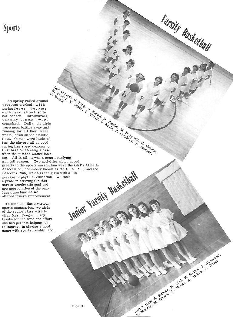 ![]() PAMELA BETH STOBBE Born: November 30, 19**; New York, New York Entered Greer: July 15, 1949 Class Secretary 3, 4 Hazard History Award 2; Sportsmanship Award 3 Florence Rapallo Award 2; Albrecht Award 4 Red & White 2, 3; Talisman 4 Dramatics 4; Martin Play 4 Field Hockey 1, 2, 3, 4; Basketball 1, 2, 3, 4 Volleyball 3, 4; Softball 1, 2, 3, 4 G.A.A. 2, 3, 4; Leader's Club 3 Ambition: College education Page 14 |
