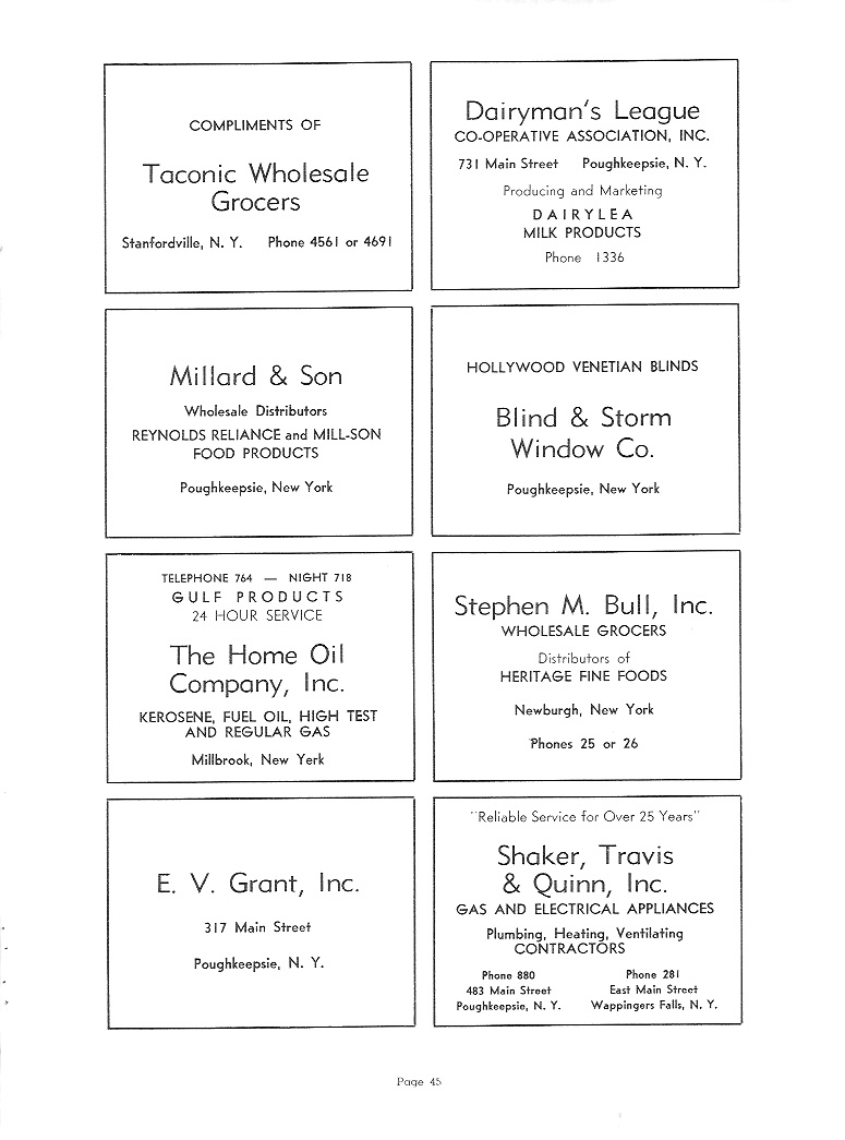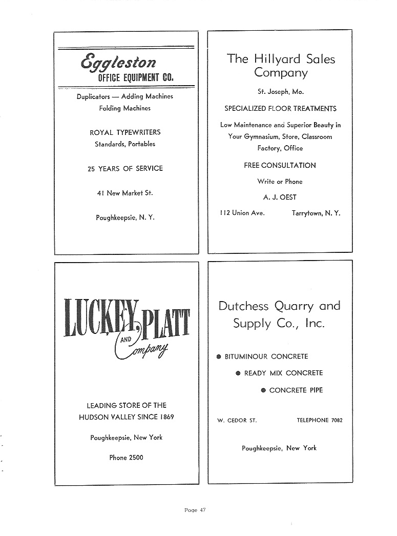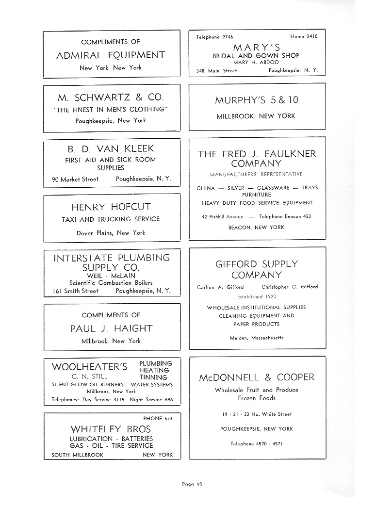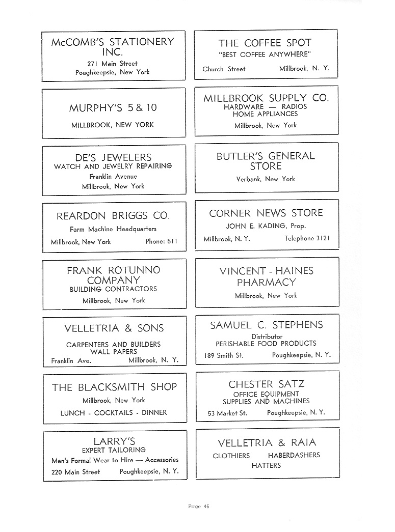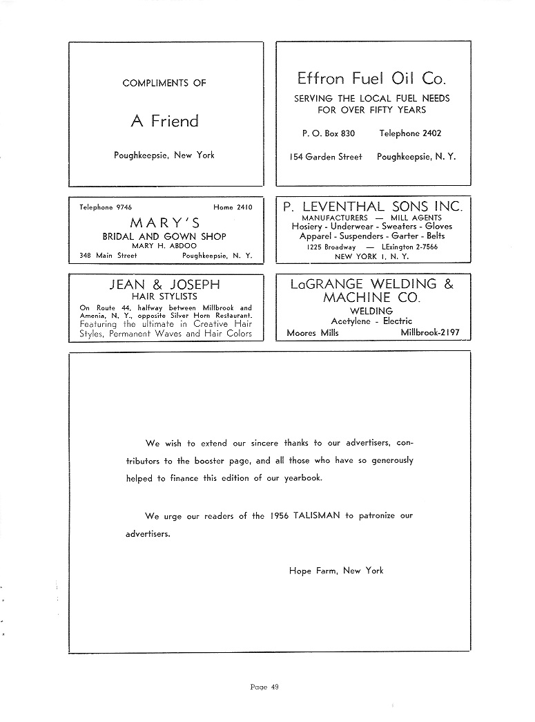 with the 1934 yearbook. The 1956 yearbook is dedicated to Mr. Mapledoram Fink and has an appreciation to Mr. George Groh - the 1934 book had no appreciation but was dedicated to Mr. Frederick Behrends. The 1956 yearbook has pictures of fourteen seniors and a post graduate - the 1934 yearbook had only six senior pictures. (continued) |