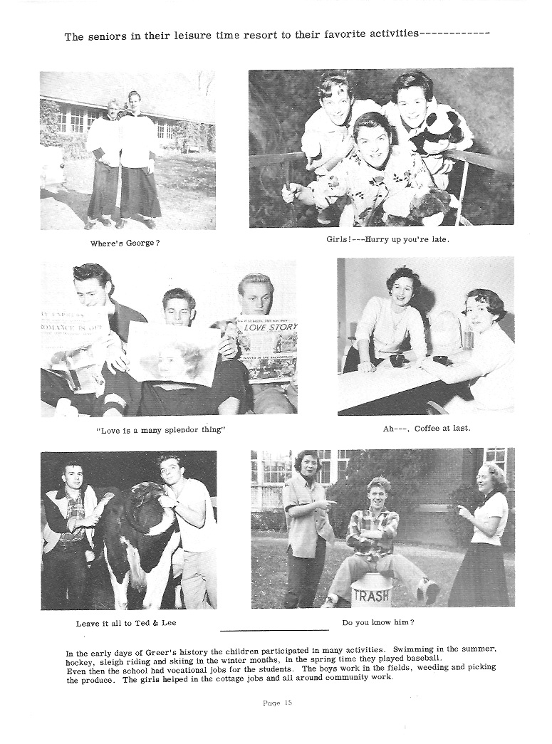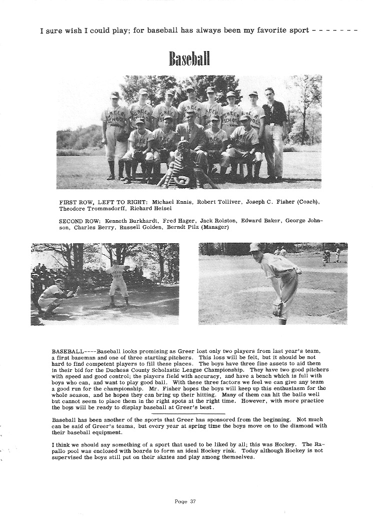 |   | GEORGE BRIAN JOHNSON Born: Brooklyn, New York, March 9, 19** Entered Greer: September 1954 Basketball 3, 4 Football 4, Manager Baseball 3, 4 Glee Club 3, 4 Y.P.F. 3, 4 Dramatics 3 Yearbook 4 Martin Play 4 Ambition: Professional Baseball |