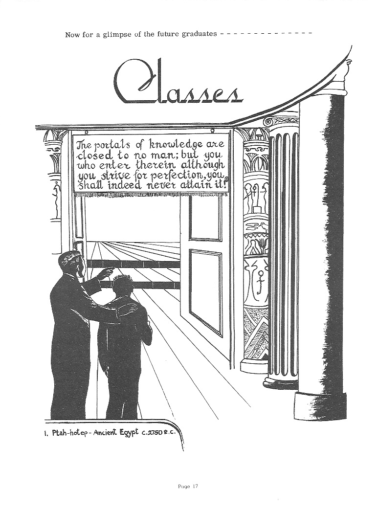 the class of 1934. The Seniors were: Ester Janet Friedman, Blenda Margaret Keely, Mary Frances Klien, Robert Allen Nicholes, James Gilbert Oakley, William Caeser Oquenda. Of these six, each had his own secret ambition. |